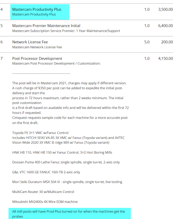 Productivity + is another name for Renishaw Probe (Probing). It can only be used for Mill (or Router) - not Lathe. Cimco Probing is a purchased add-in chook with similar capabilities and toolpaths, but made by Cimco.